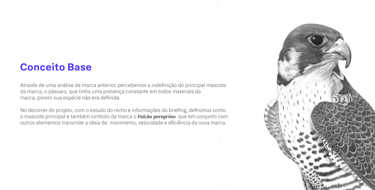 The brand's symbol, through Gestalt laws, refers to a falcon, which was previously undefined, now becomes a Peregrine Falcon, referring to the idea of movement and speed.