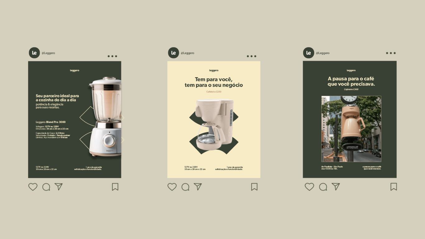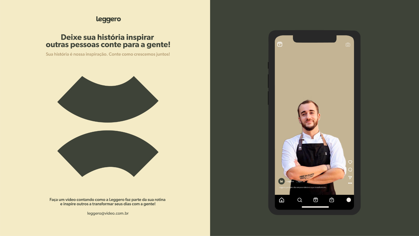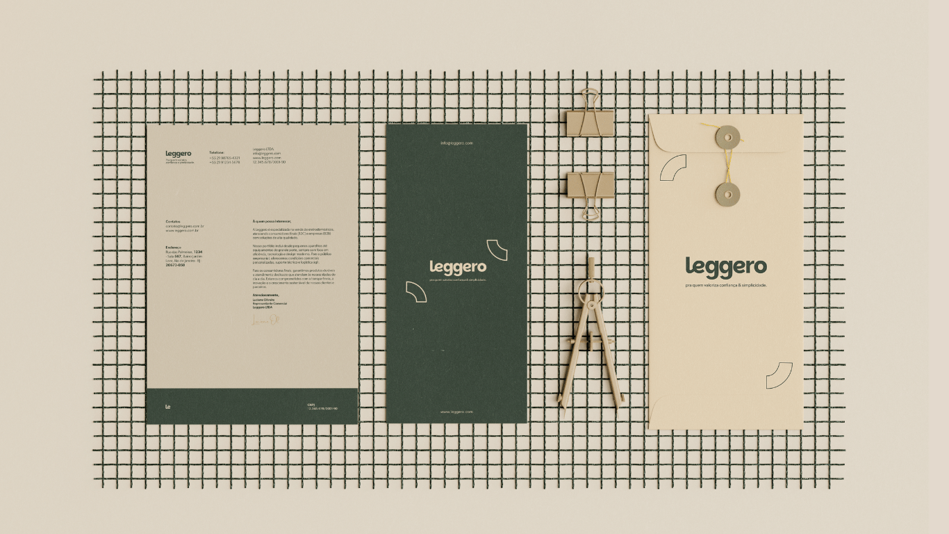 A identidade visual e verbal da Leggero foi cuidadosamente elaborada para transmitir autenticidade e durabilidade, sempre em sintonia com as expectativas do público. O compromisso da marca ultrapassa o convencional: ela atua como parceira confiável, contribuindo para o crescimento e o bem-estar de seus clientes. Além disso, conta com uma preparação para futura integração omnichannel, reforçando ainda mais a consistência e a eficácia de sua comunicação em todos os canais.