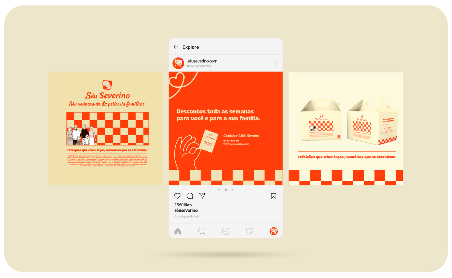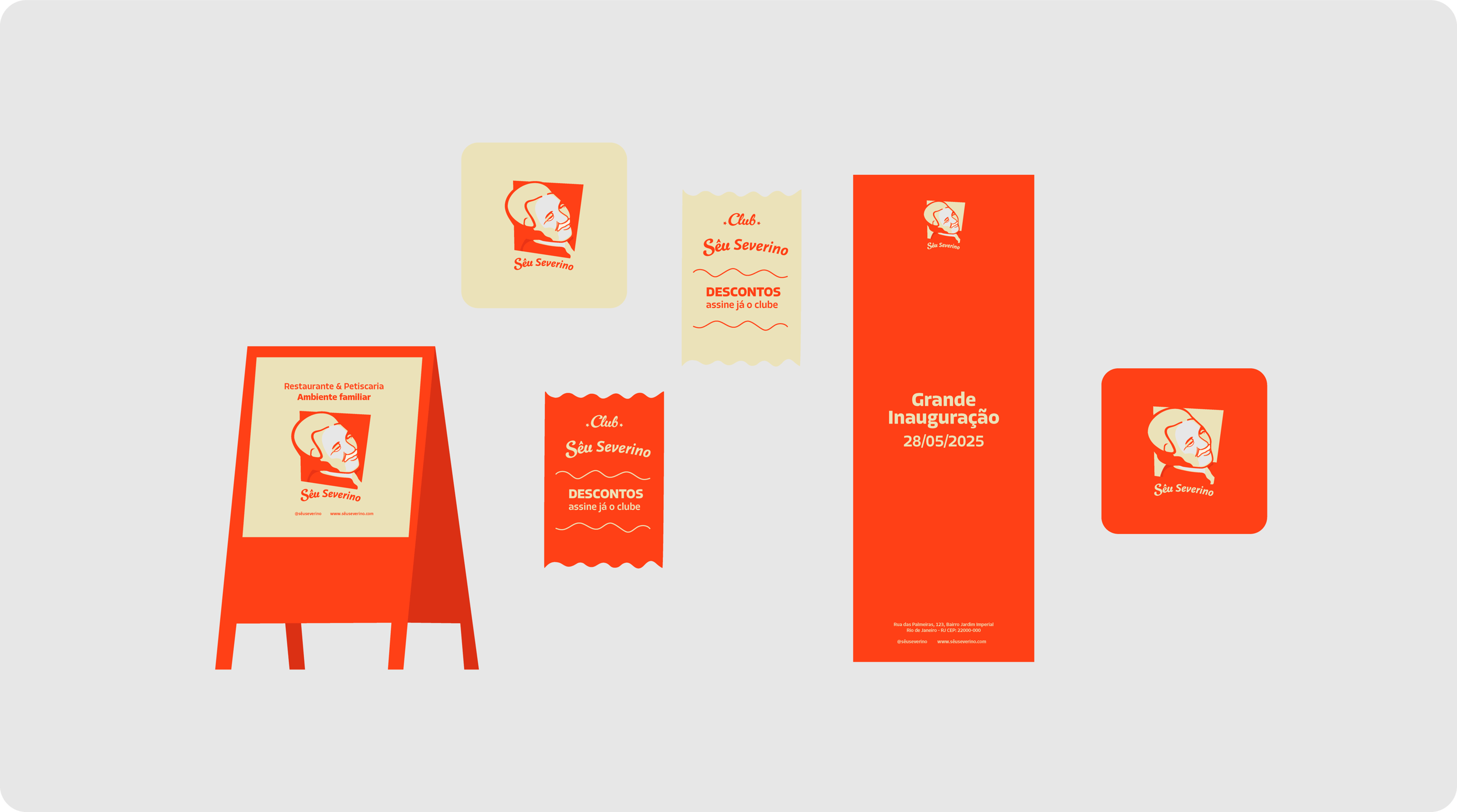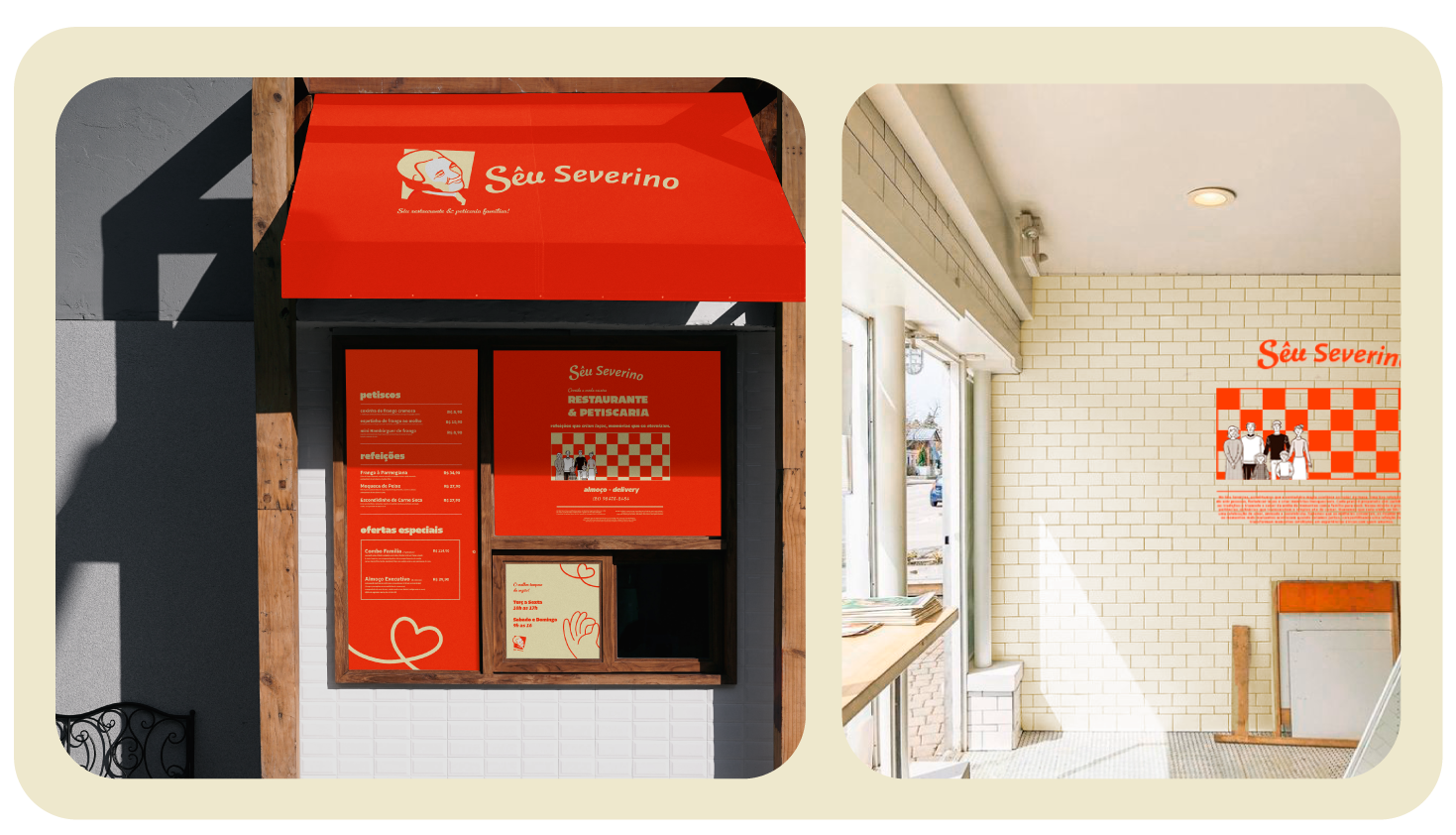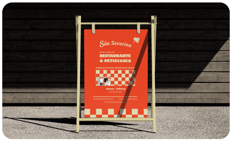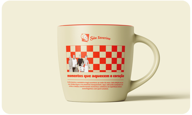O branding de Sêu Severino foi estrategicamente elaborado para comunicar autenticidade, tradição e acolhimento, a marca se posiciona como um restaurante que oferece mais do que apenas refeições – oferece uma experiência emocional e familiar, onde cada cliente se sente parte da história da marca.